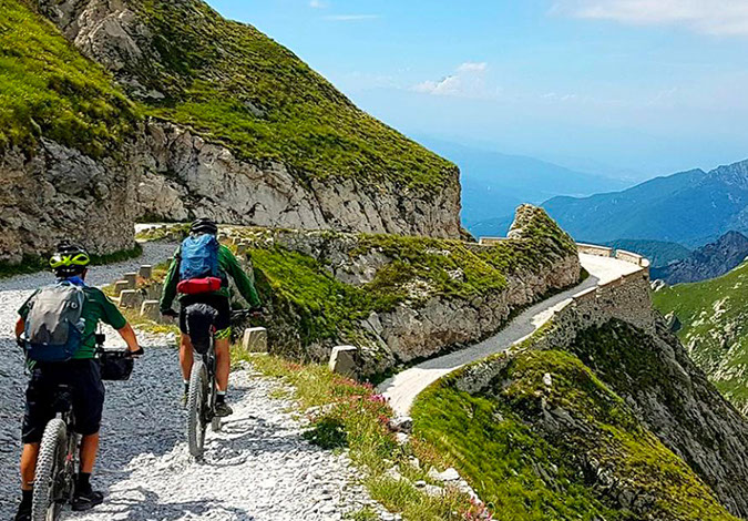 La bellissima Via del Sale è un percorso che unisce Limone Piemonte a Ventimiglia, noi faremo un percorso ad anello partendo da Limone e visitando tutti i punti più iconici dell'Alta Via, per poi entrare in Val Roja e terminare la prima tappa a La Brigue in Francia. Pedaleremo due giorni sulla spettacolare strada bianca, ex-militare, tra i 1.800 e i 2.100 metri di quota, lungo lo spartiacque alpino che collega le Alpi Piemontesi e Francesi al mare Ligure, attraversando a mezzacosta, valichi alpini, iconografici punti come il famoso tornante panoramico della Boariae e forti militari.