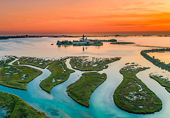 Un tour cicloturistico di quattro giorni dal Lido di Venezia a Monfalcone pedalando lungo la costa e attraversando la pianura: tra fiumi, canali, lagune, isole, borghi di pescatori e città storiche come Aquileia.